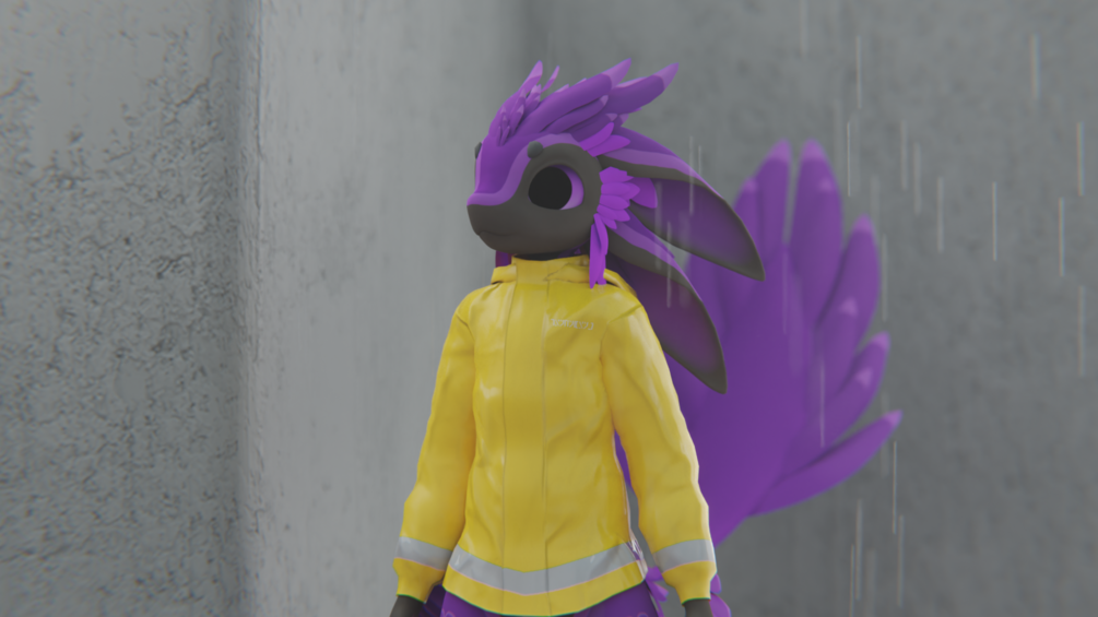 With this raincoat you can keep yourself dry, whilst also expressing yourself trough the included texture variations or by making your completely own via the substance project that's included. This raincoat is a good platform to develop into what you need or want for your avatar.